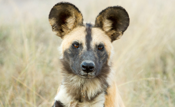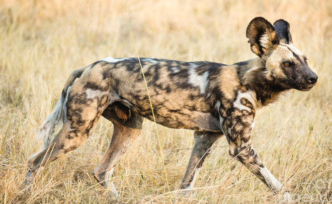 The African wild dog (Lycaon pictus) also called the African painted dog and the African hunting dog, is a wild canine which is a native species to sub-Saharan Africa. It is the largest wild canine in Africa, and the only extant member of the genus Lycaon, which is distinguished from Canis by dentition highly specialised for a hypercarnivorous diet, and by a lack of dewclaws.The African wild dog has been listed as endangered on the IUCN Red List since 1990