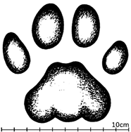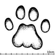 Padded (4 or 5 toes and one base with 2 lobes) with claw marks visible