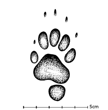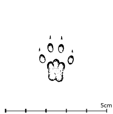 Padded (4 or 5 toes and one base with 2 lobes) with claw marks visible